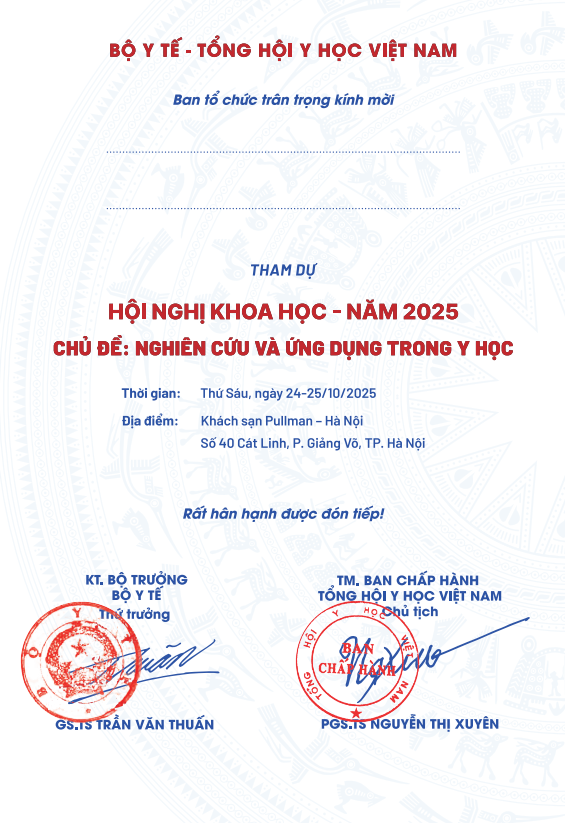 Tổng hội Y học Việt Nam phối hợp cùng Bộ Y tế trân trọng thông báo về Hội nghị Khoa học Thường niên năm 2025: